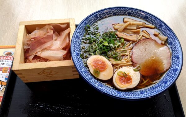 焼津鰹節「新丸正」や「天野醤油」を使ったラーメンを食べられます。