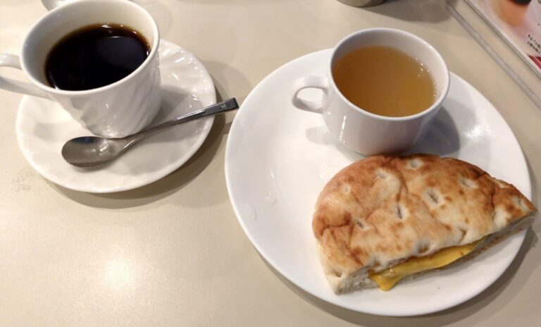 フォカッチャとハンバーグがそこそこボリュームがあるので軽食にピッタリです。