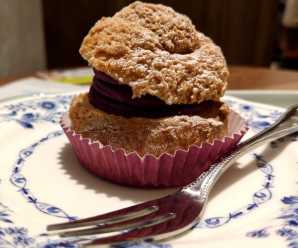 濃厚な紅芋とサクサクのシューの食感が心地いいデザートです。