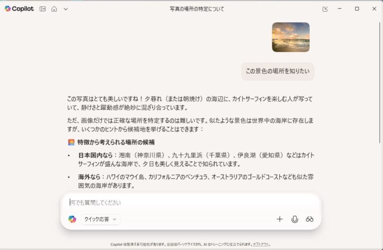 こちらをクリックするとAIアプリが起動しCopilotに質問できる準備が容易にできます。