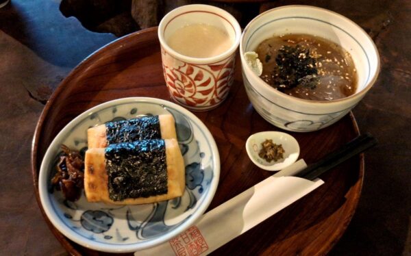 こちらが今回注文した甘酒(500円)・いそべ餅(600円)・ところ天(600円)です。
