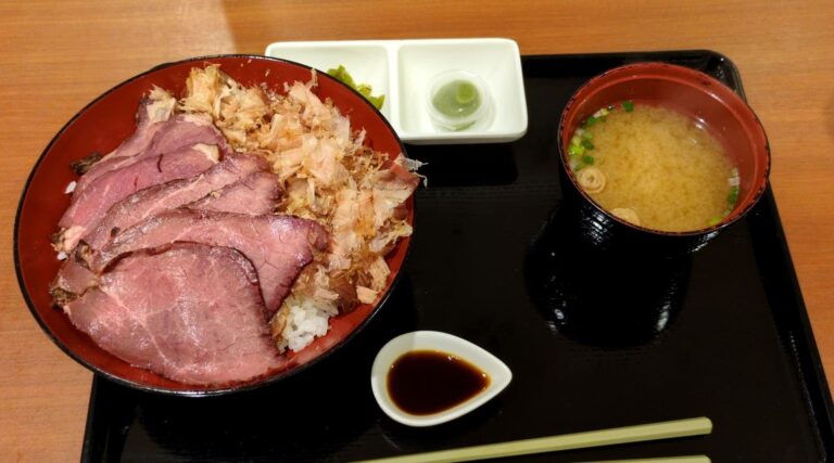 その中でもわさびと鰹節をトッピングして食べるローストビーフ丼を食べてきました。