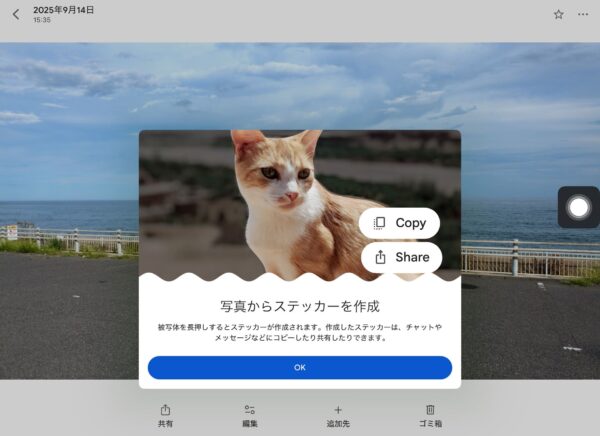 今回は、iPhone版とiPad版のGoogleフォトで使える「写真からステッカーを作成」する機能を使ってみました。
